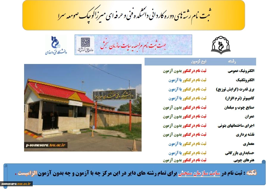 ثبت نام رشته های دوره کاردانی دانشکده فنی و حرفه ای میرزاکوچک صومعه سرا 5