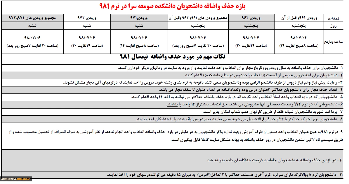 امتیاز دهید : بازه حذف واضافه دانشجویان دانشکده صومعه سرا در ترم 981 4 چهارشنبه 27 شهریور 1398 ساعت 13:08