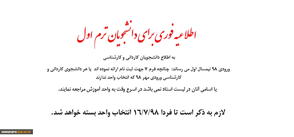 اطلاعیه فوری برای دانشجویان ترم اول 2