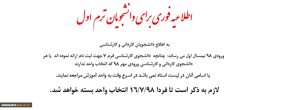 اطلاعیه فوری برای دانشجویان ترم اول 2