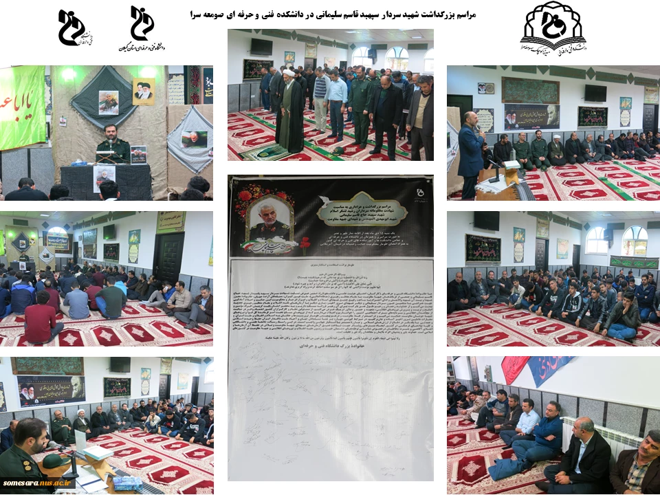 امتیاز دهید : مراسم سوگواری شهادت سردار رشید اسلام، سپهبد حاج قاسم سلیمانی و هم رزمان عزیزش، روز یکشنبه 98/10/15 همزمان با دانشکده ها و آموزشکده های فنی و حرفه ای سراسر کشور پس از اقامه نماز ظهر و عصر، در دانشکده فنی و حرفه ای صومعه سرا 2 دوشنبه 16 دی 1398 ساعت 8:43