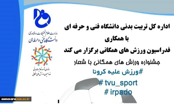 امتیاز دهید : اداره کل تربیت بدنی دانشگاه فنی و حرفه ای با همکاری فدراسیون ورزش های همگانی برگزار می کند 2 شنبه 20 اردیبهشت 1399 ساعت 9:13