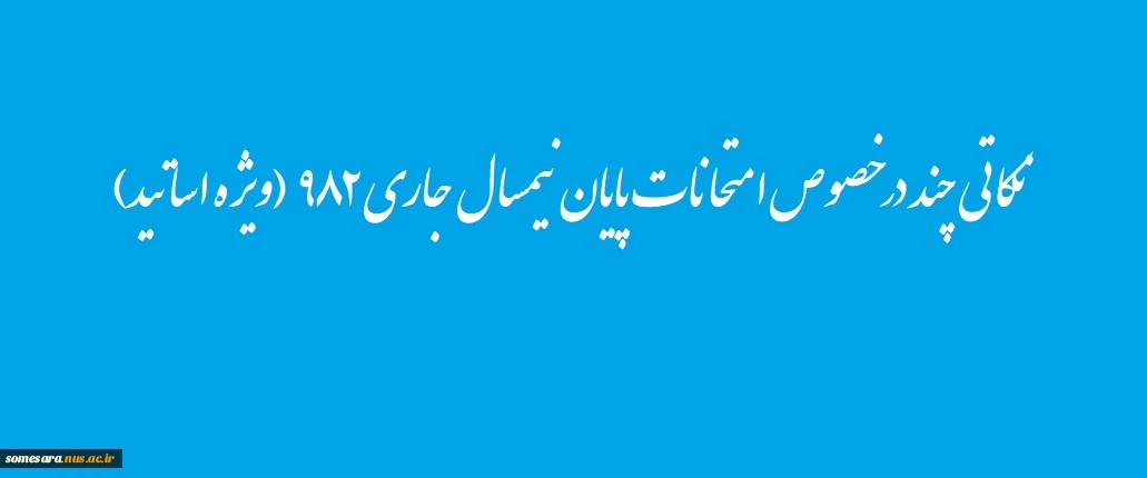 امتیاز دهید : نکاتی چند در خصوص امتحانات پایان نیمسال جاری (ویژه اساتید ) 2 سهشنبه 10 تیر 1399 ساعت 11:07