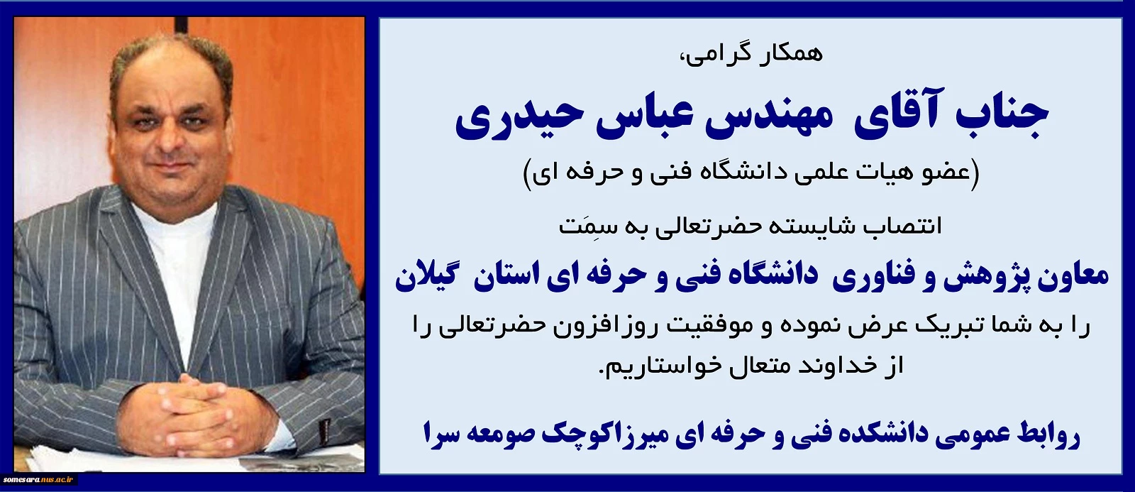 تبریک انتصاب معاون پژوهش و فناوری 2