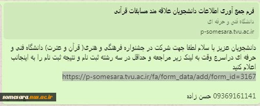 امتیاز دهید : فرم جمع آوری اطلاعات فرهنگی ( بیست هشتمین جشنواره سراری قرآن و عترت دانشجویان ) 2 سهشنبه 4 خرداد 1400 ساعت 21:52