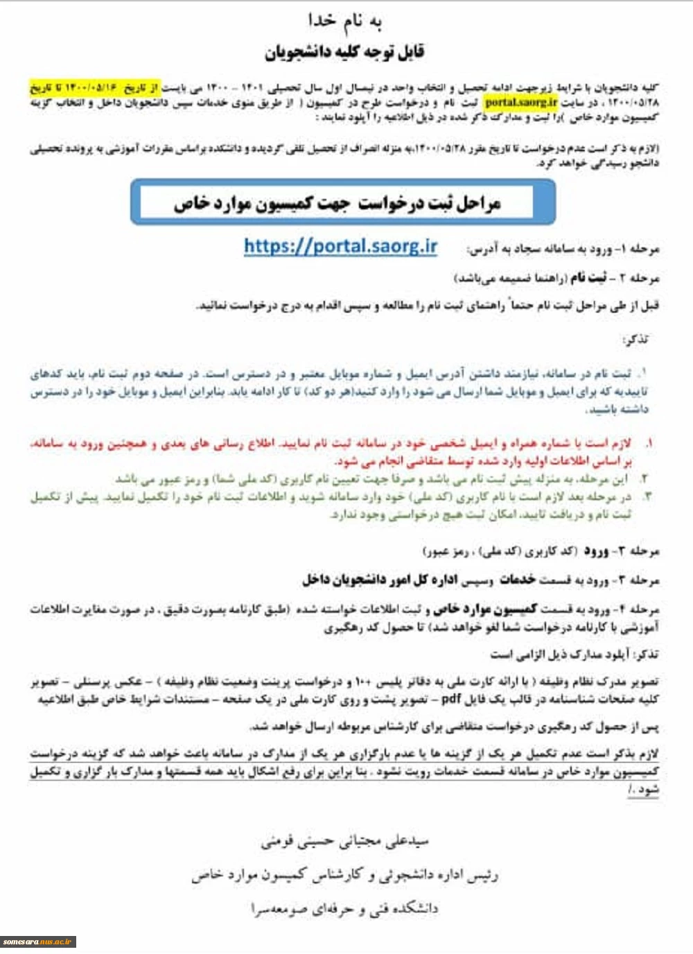 اطلاعیه ثبت نام دانشجویان در سامانه کمیسیون موارد خاص 4