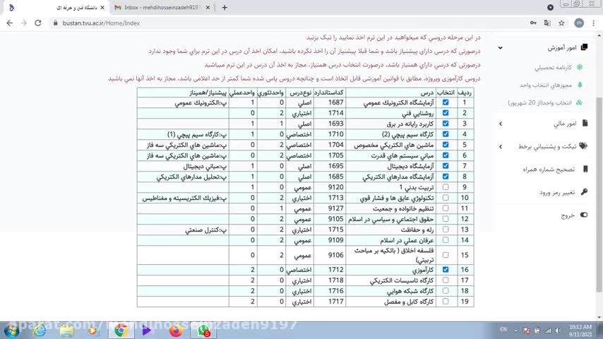 فیلم آموزش انتخاب واحد در سامانه بوستان 3