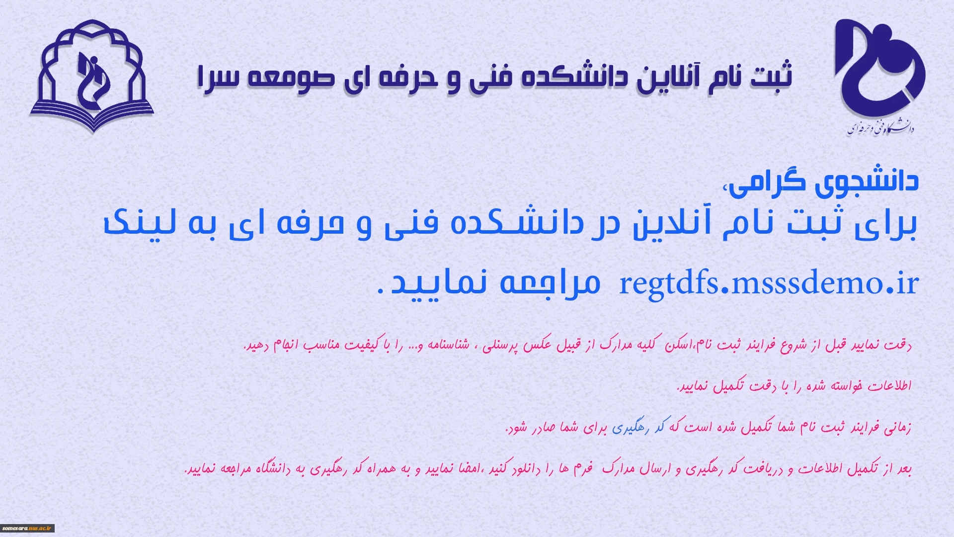 مراحل ثبت نام در دانشکده فنی و حرفه ای صومعه سرا 2