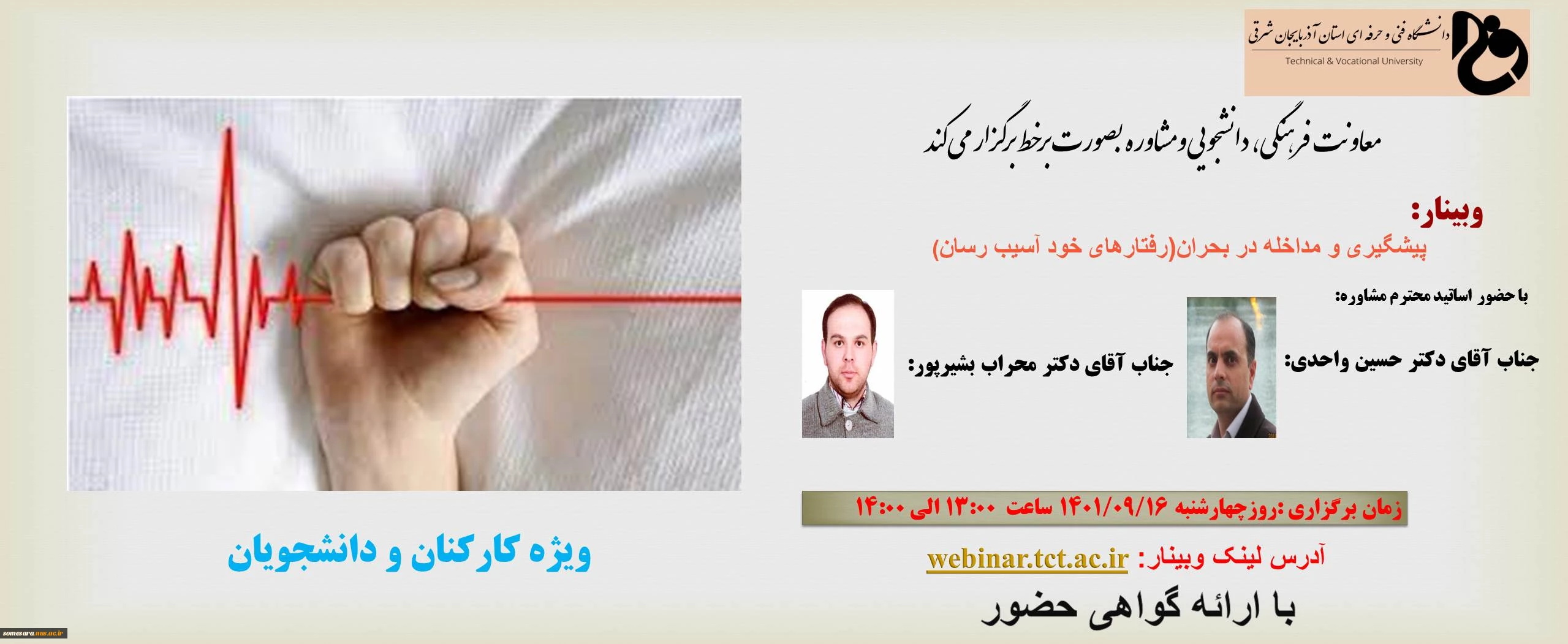 برگزاری وبینار با عنوان " رفتارهای خود آسیب رسان" 2