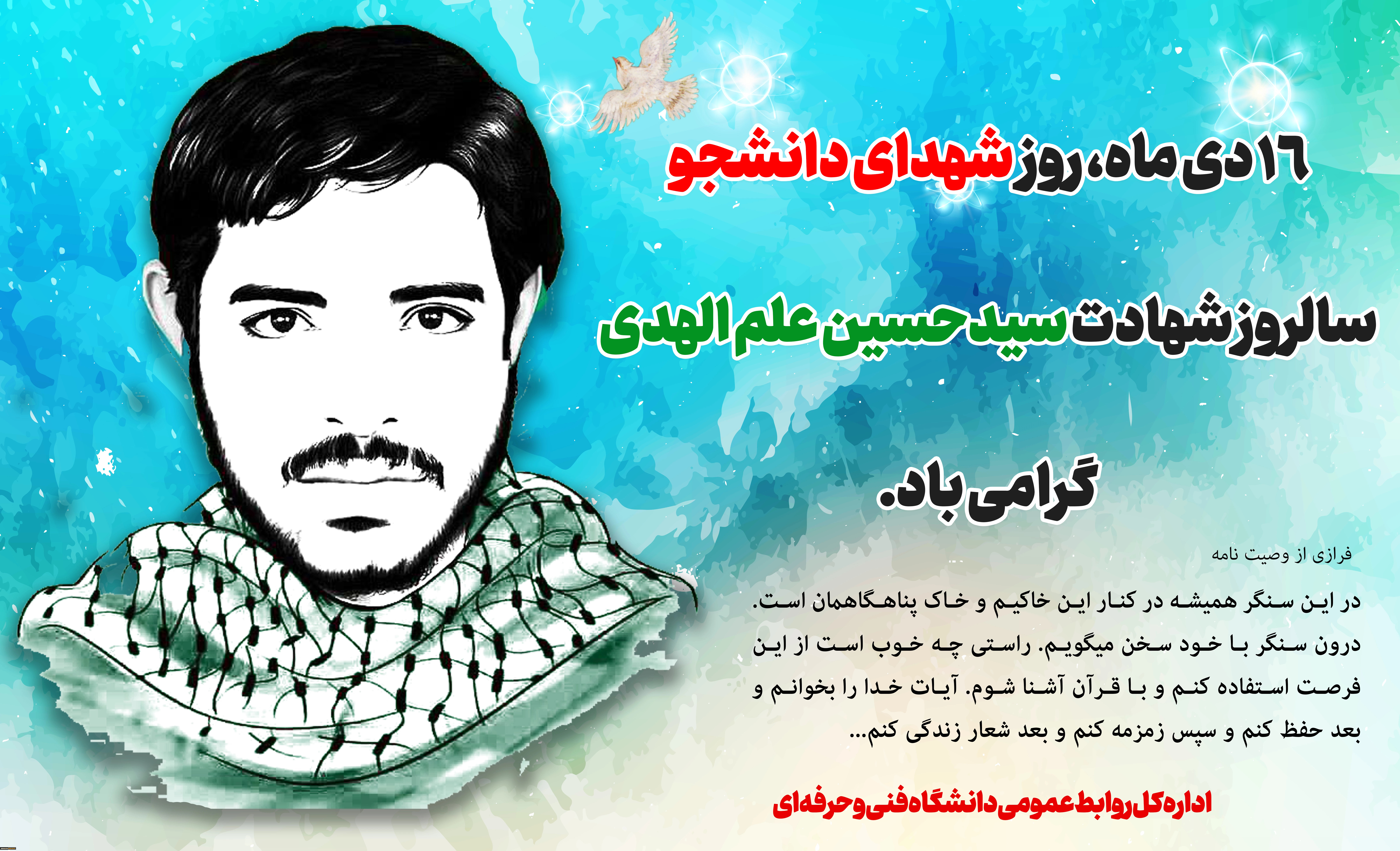 امتیاز دهید : ۱۶ دی ماه، روز شهدای دانشجو، سالروز شهادت سیدحسین علم الهدی و همرزمان وی در هویزه گرامی باد. 2 شنبه 17 دی 1401 ساعت 8:10