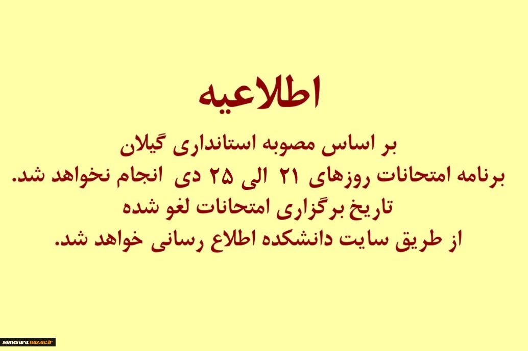لغو امتحانات روزهای 21 لغایت 25 دی 2