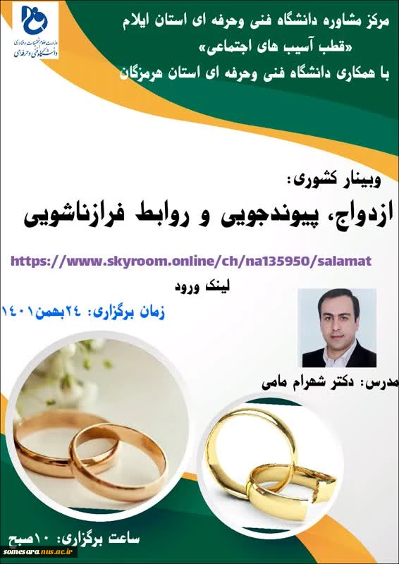 امتیاز دهید : برگزاری وبینار با موضوع ازدواج،پیوندجویی،و روابط فرازناشویی - استان ایلام 2 دوشنبه 24 بهمن 1401 ساعت 9:03