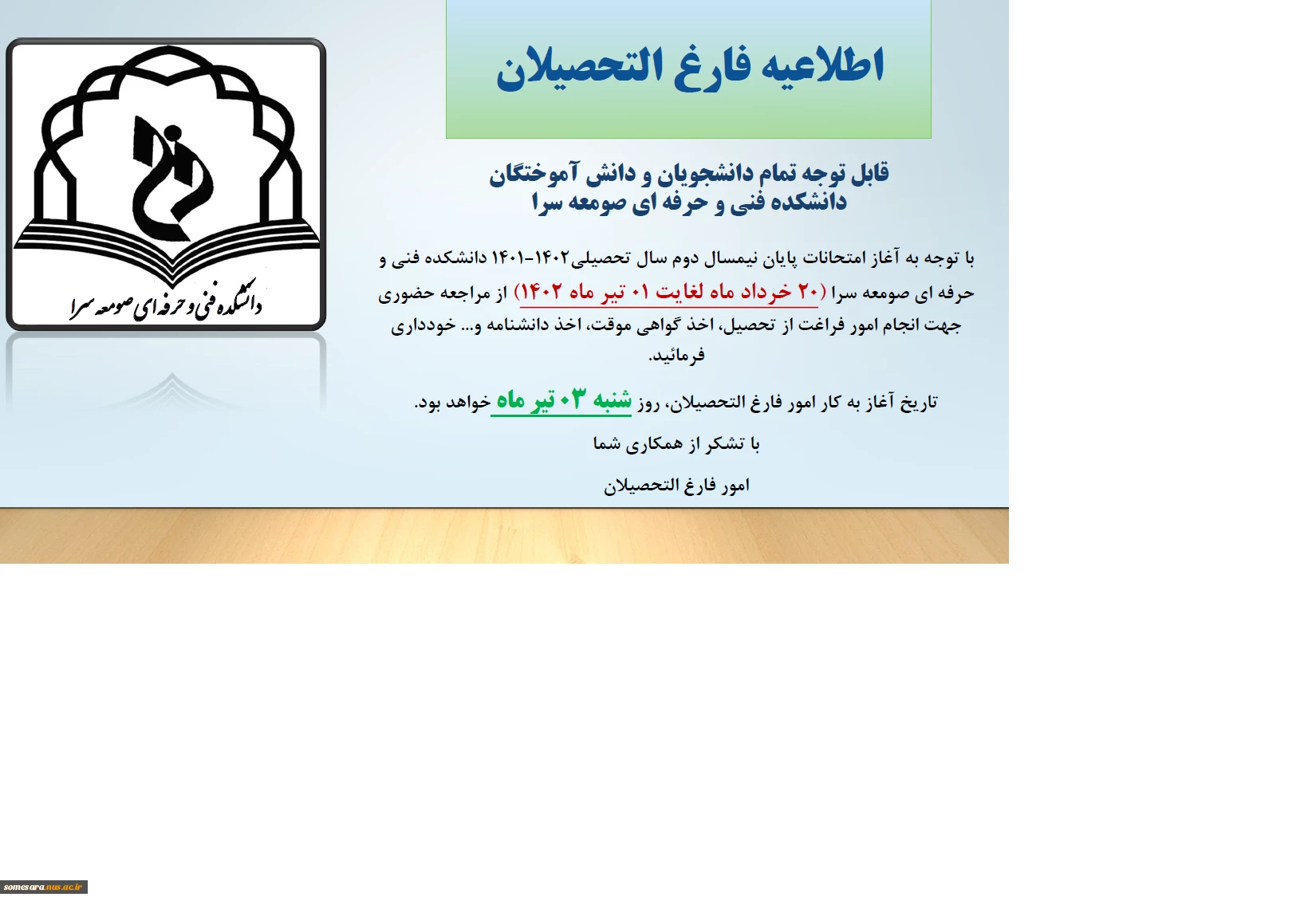 امتیاز دهید : اطلاعیه فارغ التحصیلان در دوره امتحانات پایان نیمسال دوم سال تحصیلی 1402-1401 2 یکشنبه 31 اردیبهشت 1402 ساعت 10:40