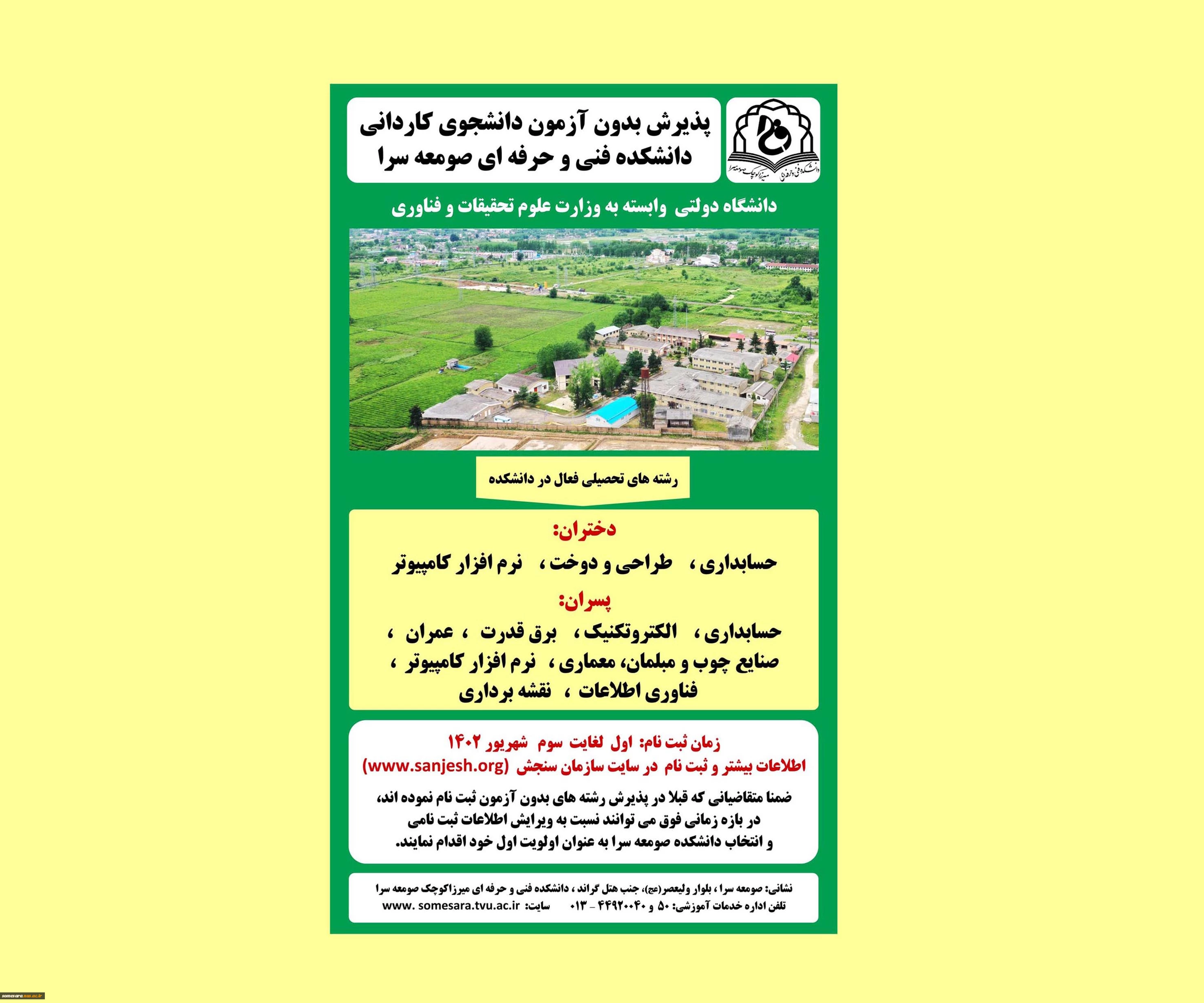 پذیرش دانشجوی کاردانی (اسامی و ظرفیت رشته های دانشکده صومعه سرا) 2