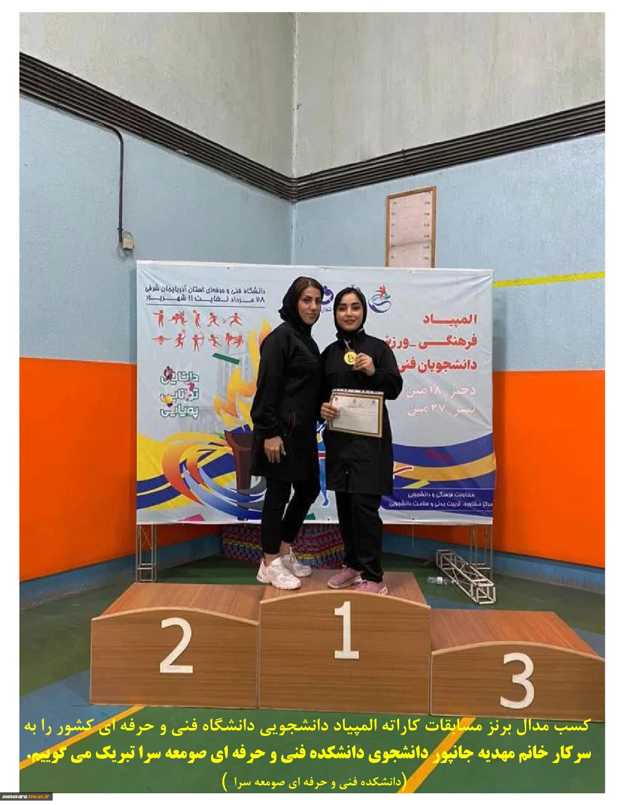 امتیاز دهید : کسب مدال مسابقات المپیاددانشگاه فنی و حرفه ای کشور توسط دانشجو مهدیه جانپور( دانشکده فنی و حرفه ای صومعه سرا) 2 سهشنبه 31 مرداد 1402 ساعت 12:48