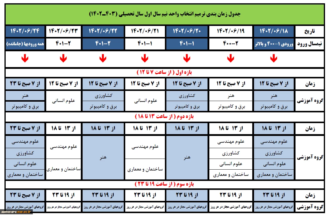 زمان بندی انتخاب واحد سال تحصیلی 1402-1403 3