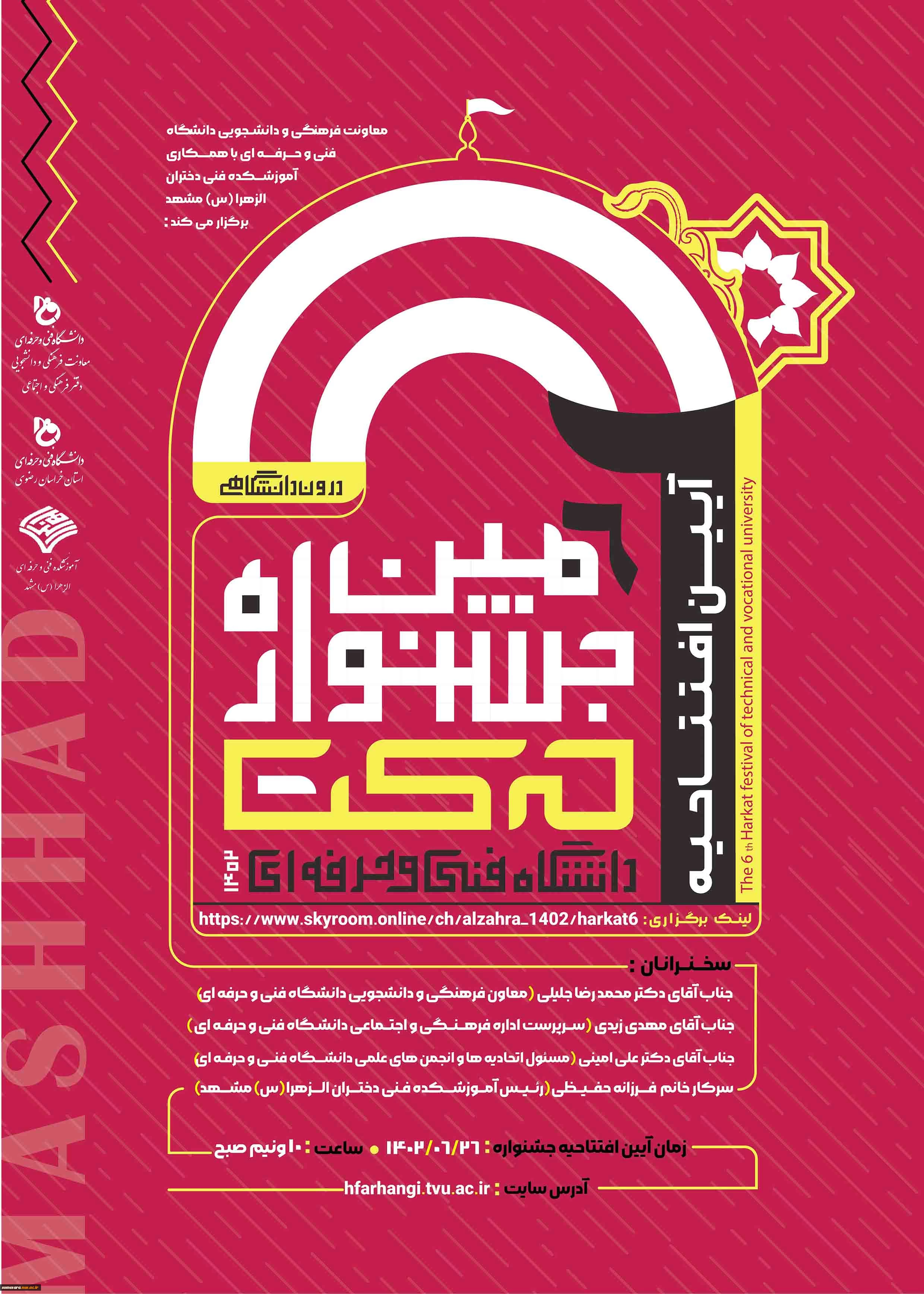 امتیاز دهید : با احترام دعوتنامه افتتاحیه ششمین جشنواره درون دانشگاهی حرکت به میزبانی اموزشکده الزهرا مشهد 2 یکشنبه 26 شهریور 1402 ساعت 8:38