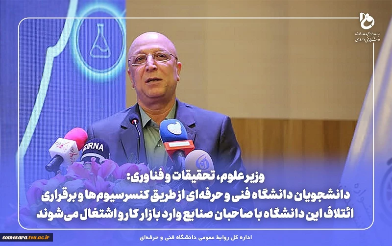 وزیر علوم، تحقیقات و فناوری: دانشجویان دانشگاه فنی و حرفه‌ای از طریق کنسرسیوم‌ها و برقراری ائتلاف این دانشگاه با صاحبان صنایع وارد بازار کار و اشتغال می‌شوند. 2