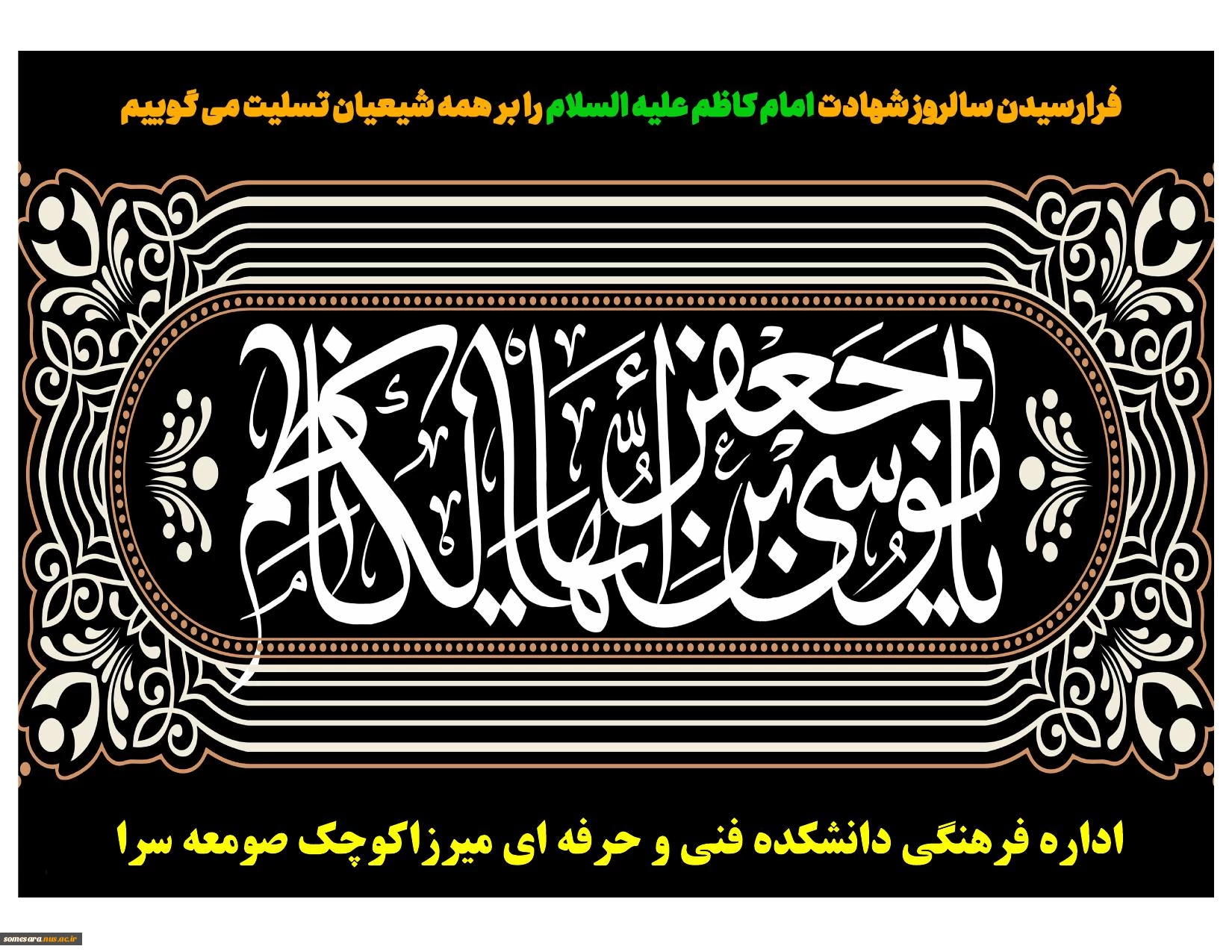 امتیاز دهید : فرارسیدن سالروز شهادت امام کاظم علیه السلام را بر همه شیعیان تسلیت می گوییم 2 سهشنبه 17 بهمن 1402 ساعت 9:10