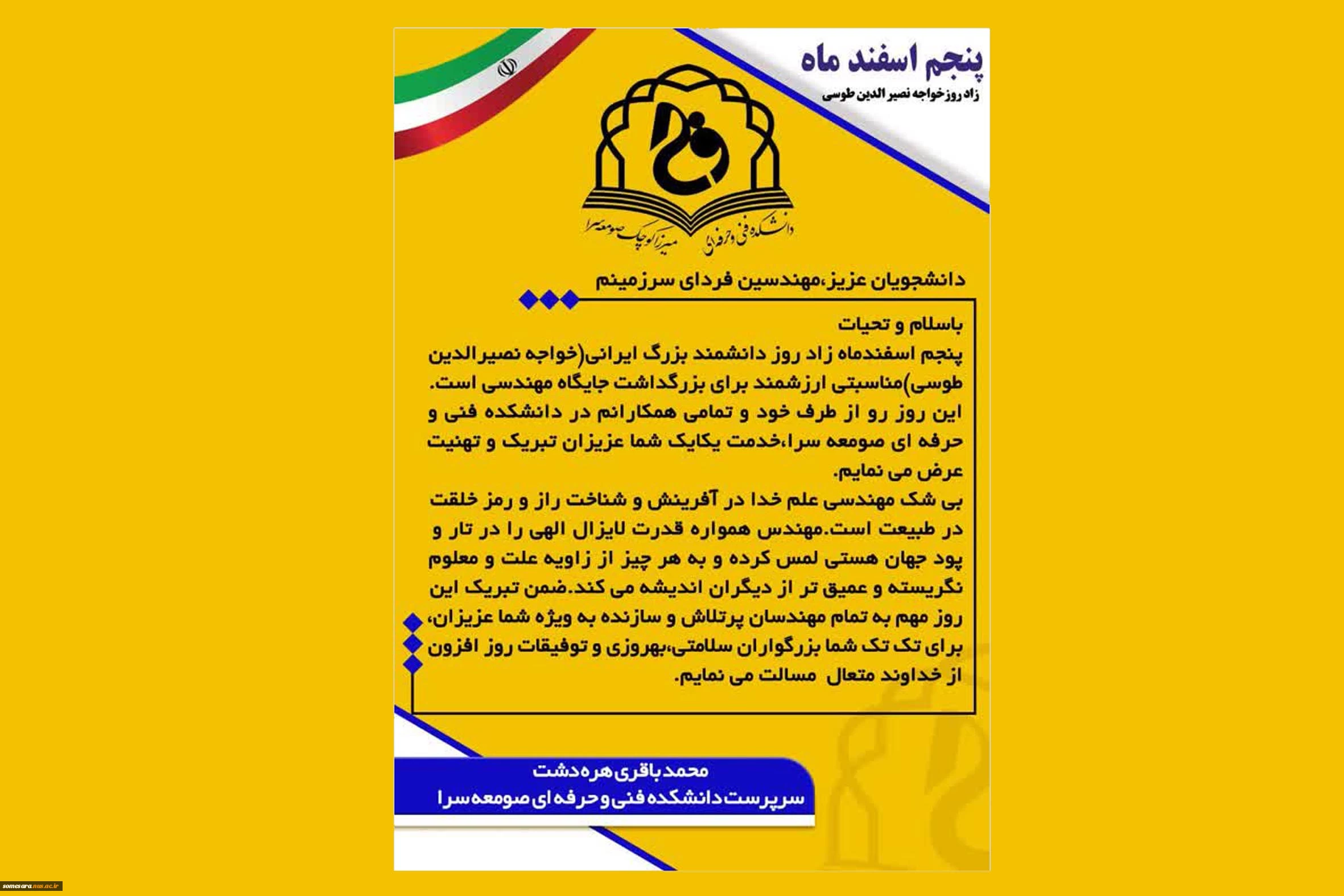 پیام تبریک سرپرست دانشکده بمناسبت روز معلم 2