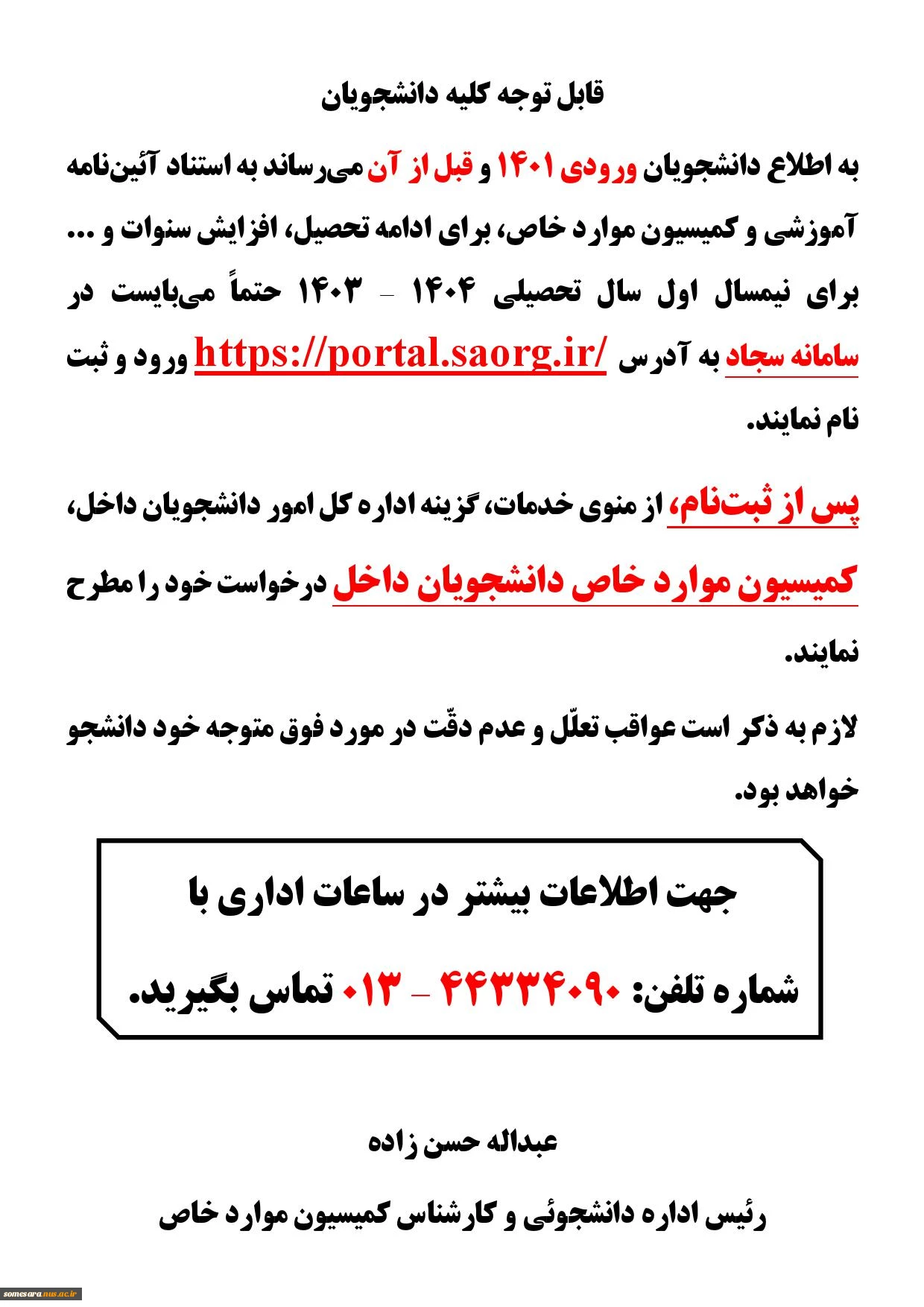 اطلاعیه کمیسیون موارد خاص نیمسال اول1404-1403 2