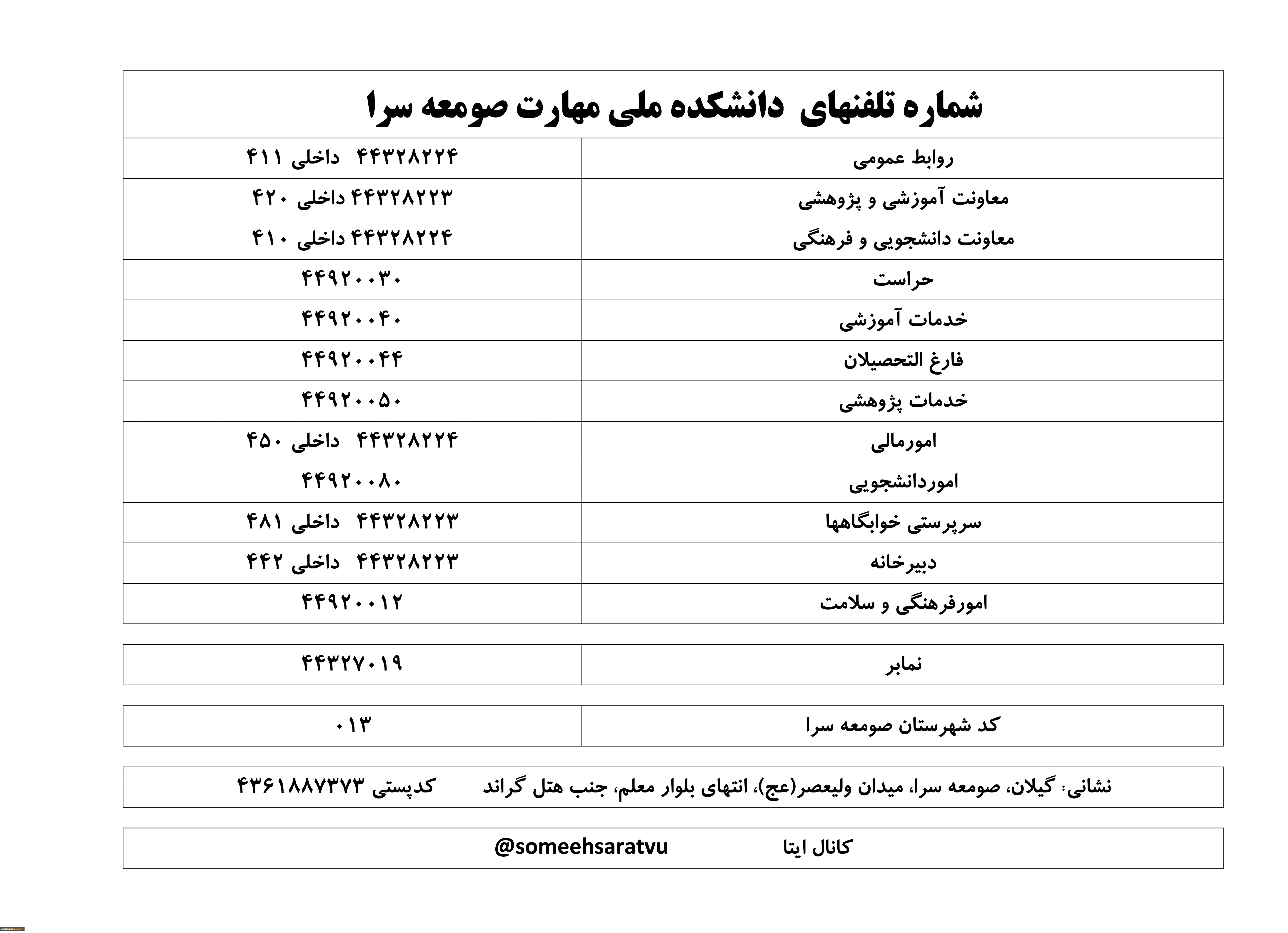 شماره تلفنهای دانشکده 2